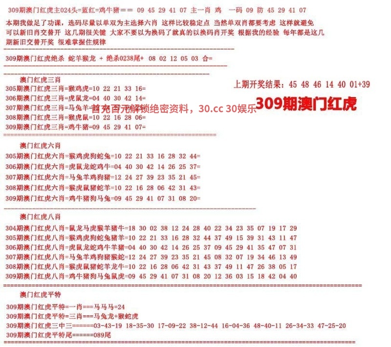 | 311期:【红虎好料】『两季中特』 | 红虎好料 |