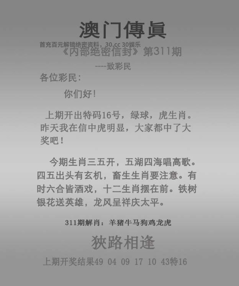 | 310期:绝杀三尾【458尾】开虎16准 |